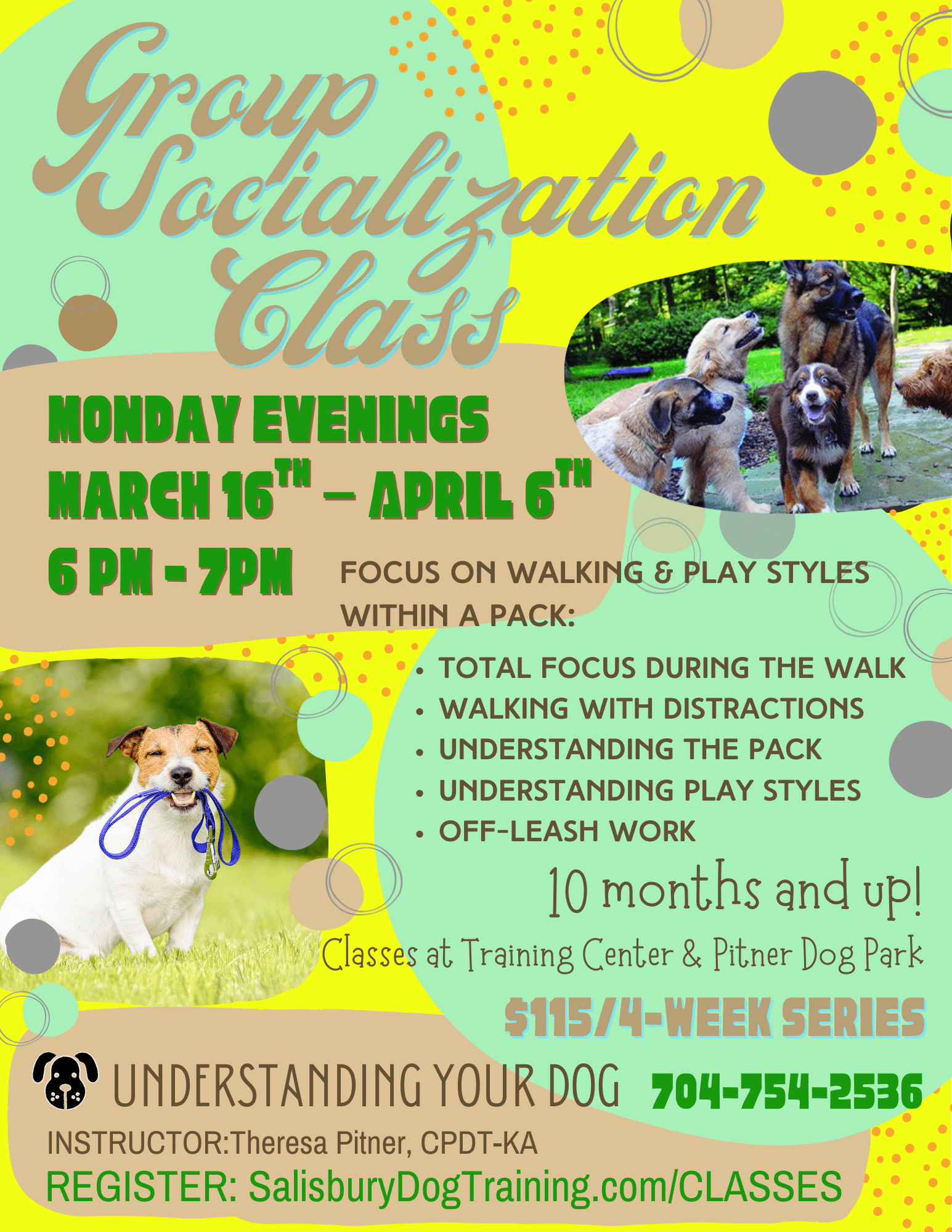 Learn: • Total Focus during the Walk • Walking with Distractions • Understanding the Pack • Understanding Play Styles with Off-Leash Work Classes will be held at both The Training…
